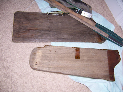 Obviously the bottom piece is the piece I cleaned. See the slight difference. I want this teak to be as beautiful as summer so more cleaning is in order.